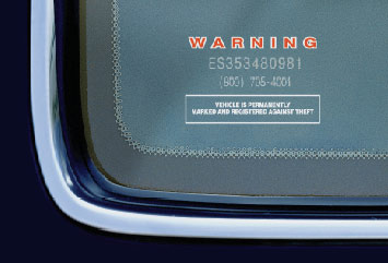 warning, the Express Etch vehicle becomes easily identifiable. Auto thieves rarely steal a vehicle